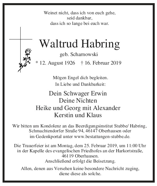 †16.02.2019, Ruhestätte: ev. Friedhof an der Harkortstraße