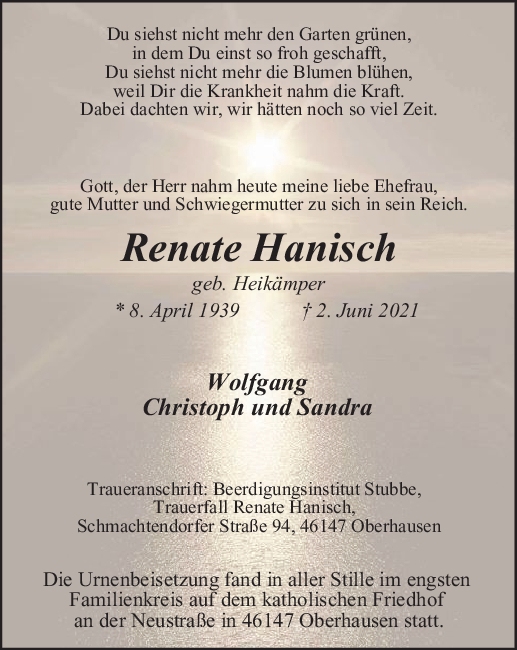 †02.06.2021, Ruhestätte: kath. Friedhof an der Neustraße