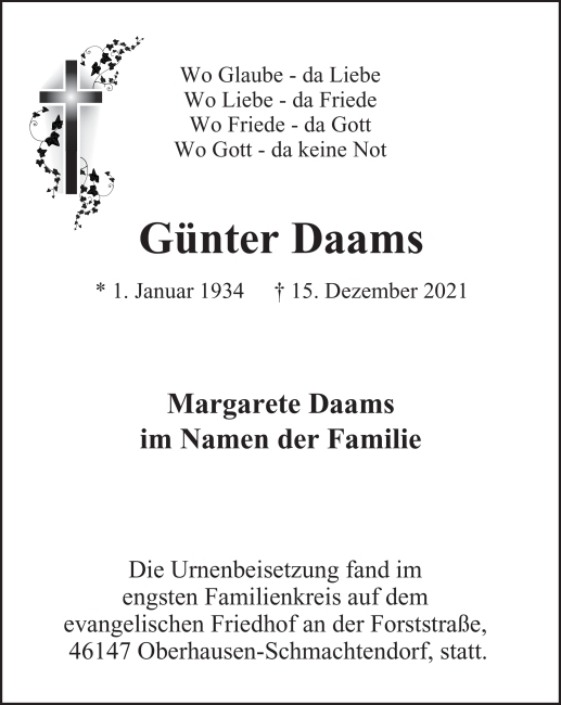 †15.12.2021, Ruhestätte: ev. Friedhof an der Forststraße, Oberhausen Schmachtendorf
