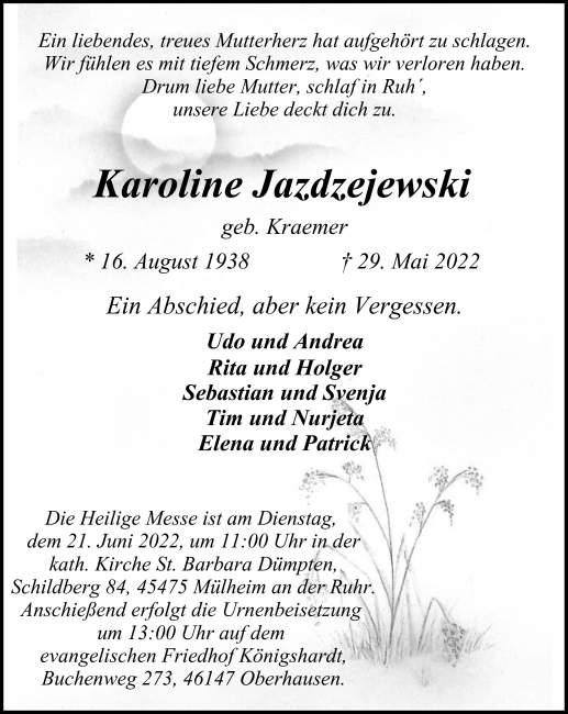 †29.05.2022, Ruhestätte: ev. Friedhof am Buchenweg