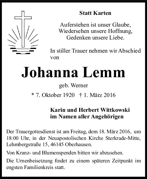 †01.03.2016, Ruhestätte: Ostfriedhof Oberhausen
