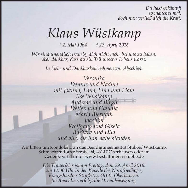 Ich wünsche Dir und Deiner Familie viel Kraft und
