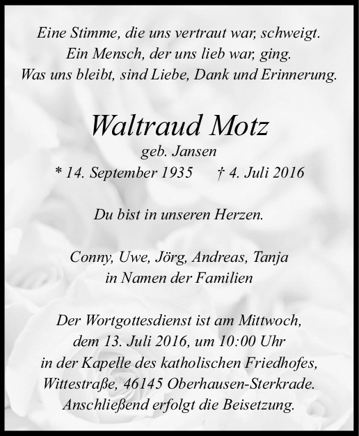 †04.07.2016, Ruhestätte: kath. Friedhof an der Wittestraße