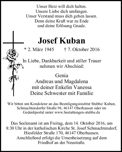 Herzlichen Beileid für die Familie Kuban