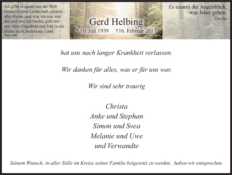 †16.02.2017, Ruhestätte: städtischer Nordfriedhof, Königshardter Straße 5 a, 46145 Oberhausen