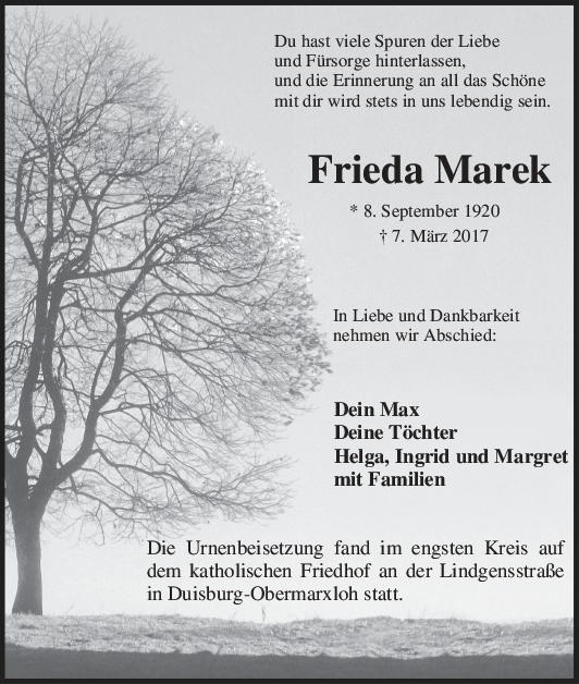 †07.03.2017, Ruhestätte: katholischer Friedhof an der Lindgensstraße in Duisburg-Obermarxloh
