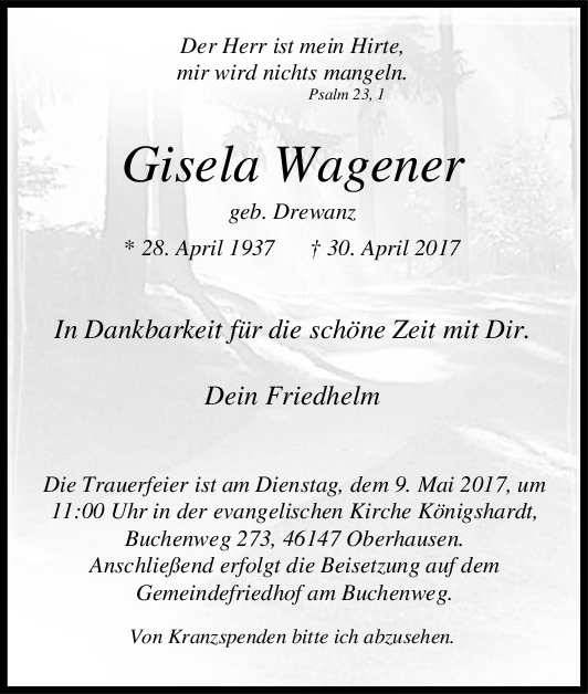 †30.04.2017, Ruhestätte: Gemeindefriedhof am Buchenweg