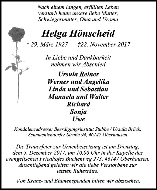 †22.11.2017, Ruhestätte: evangelischer Friedhof am Buchenweg, 46147 Oberhausen