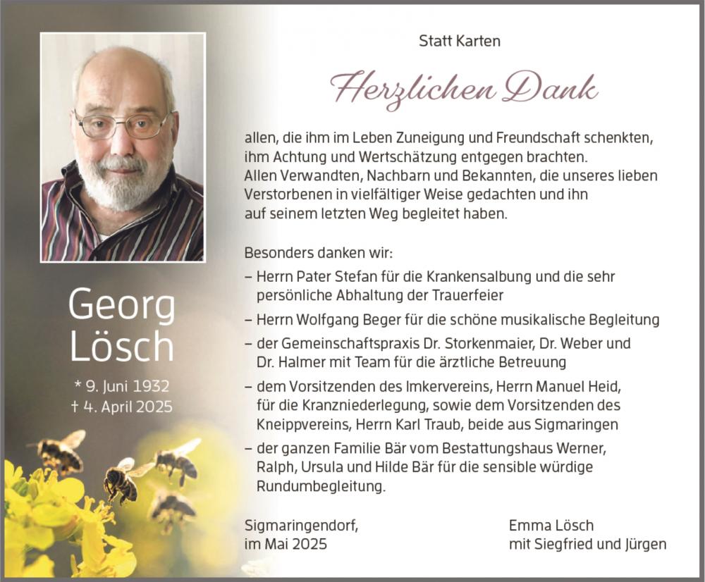 Trauerfeier am Donnerstag, 17. April 2025 um 14.00 Uhr in der Aussegnungshalle auf dem Friedhof in Sigmaringendorf mit anschließender Urneneinbringung.