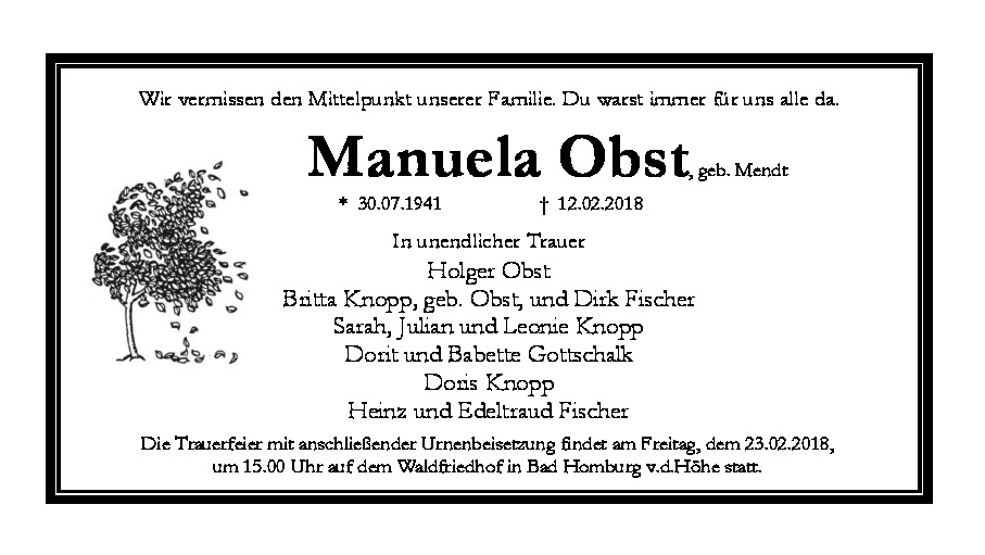 †12.02.2018, Ruhestätte: Waldfriedhof, Bad Homburg