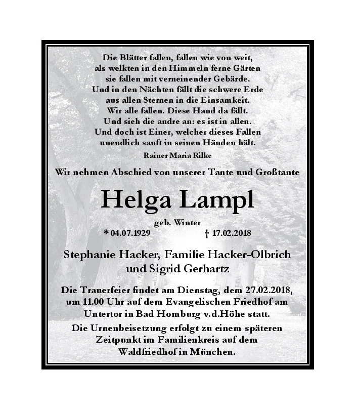 †17.02.2018, Ruhestätte: Waldfriedhof München
