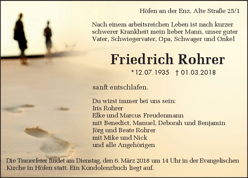†01.03.2018, Ruhestätte: Friedhof Höfen an der Enz