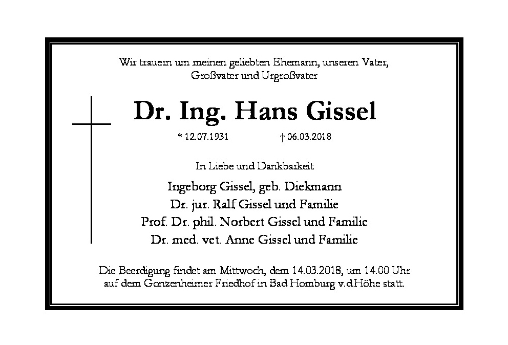 †06.03.2018, Ruhestätte: Gonzenheimer Friedhof, Bad Homburg