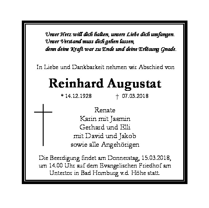 †07.03.2018, Ruhestätte: Ev. Friedhof, Bad Homburg
