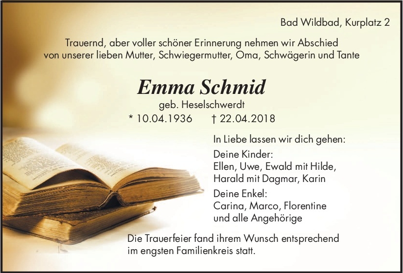 †22.04.2018, Ruhestätte: Waldfriedhof Bad Wildbad
