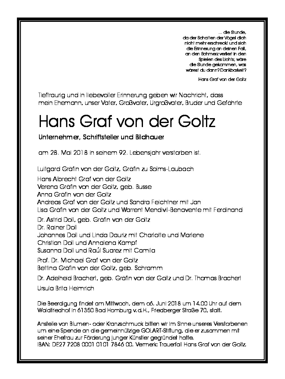 Graf von der Goltz, Hans