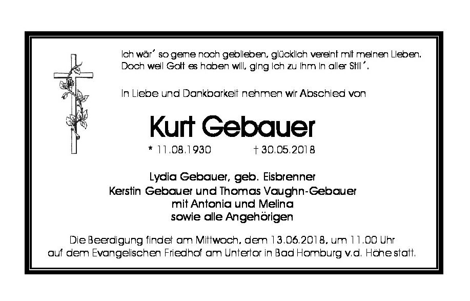 †30.05.2018, Ruhestätte: Ev. Friedhof, Bad Homburg