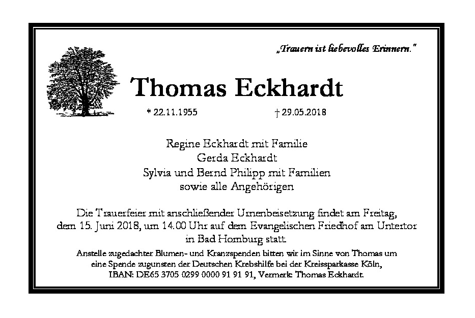 †29.05.2018, Ruhestätte: Ev. Friedhof, Bad Homburg