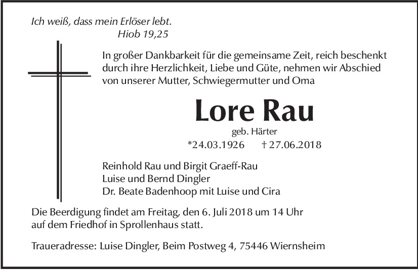 †27.06.2018, Ruhestätte: Friedhof Sprollenhaus