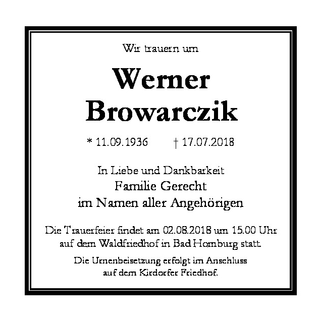 †17.07.2018, Ruhestätte: Kirdorfer Friedhof, Bad Homburg