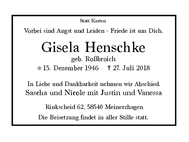 in diesen Tagen fühlen wir mit Ihnen und wünschen Ihnen von Herzen, dass Sie aus den glücklichen Erinnerungen Kraft schöpfen, um positiv in die Zukunft zu gehen. Diese Gedenkseite möge Ihnen dabei helfen, Ihre Trauer zu teilen und das Andenken gemeinsam wachzuhalten.