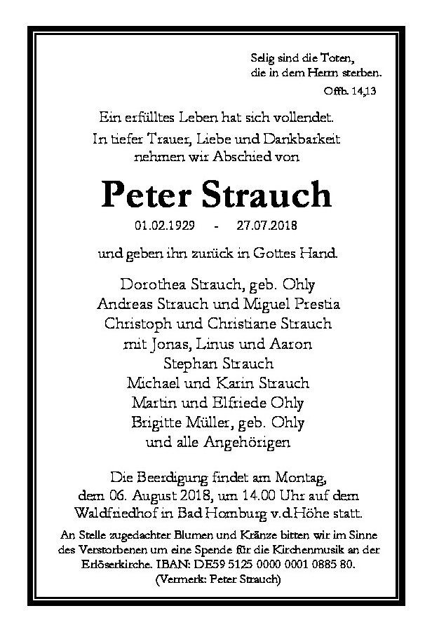 †27.07.2018, Ruhestätte: Waldfriedhof, Bad Homburg