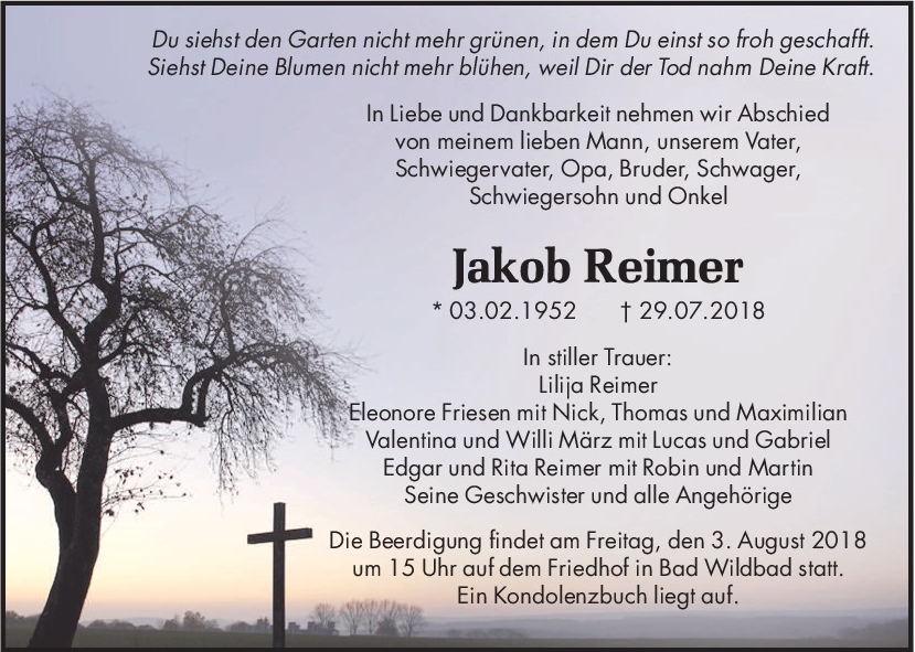 †29.07.2018, Ruhestätte: Waldfriedhof Bad Wildbad