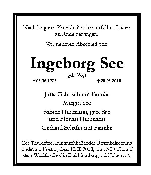 †28.06.2018, Ruhestätte: Waldfriedhof, Bad Homburg