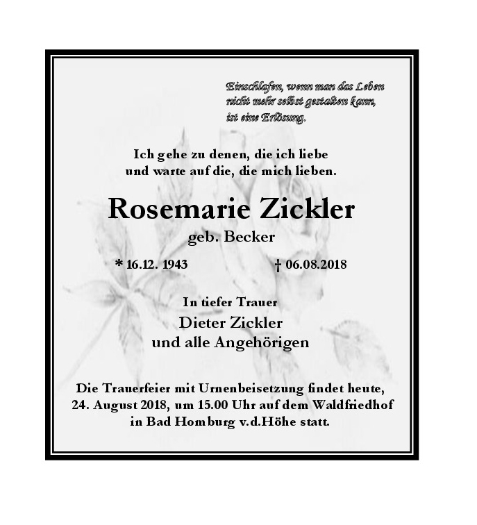 †06.08.2018, Ruhestätte: Waldfriedhof, Bad Homburg
