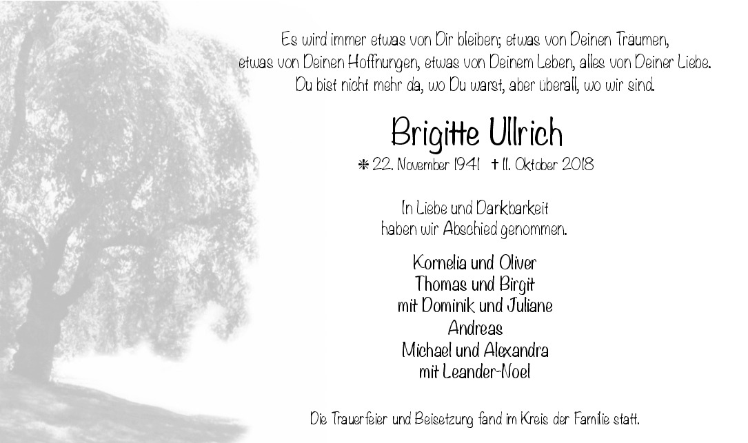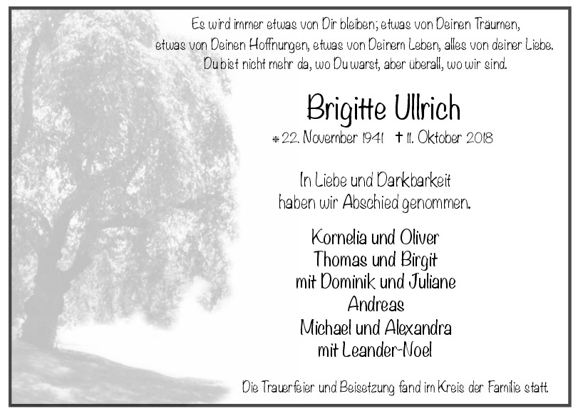 in diesen Tagen fühlen wir mit Ihnen und wünschen Ihnen von Herzen, dass Sie aus den glücklichen Erinnerungen Kraft schöpfen, um positiv in die Zukunft zu gehen. Diese Gedenkseite möge Ihnen dabei helfen, Ihre Trauer zu teilen und das Andenken gemeinsam wachzuhalten.