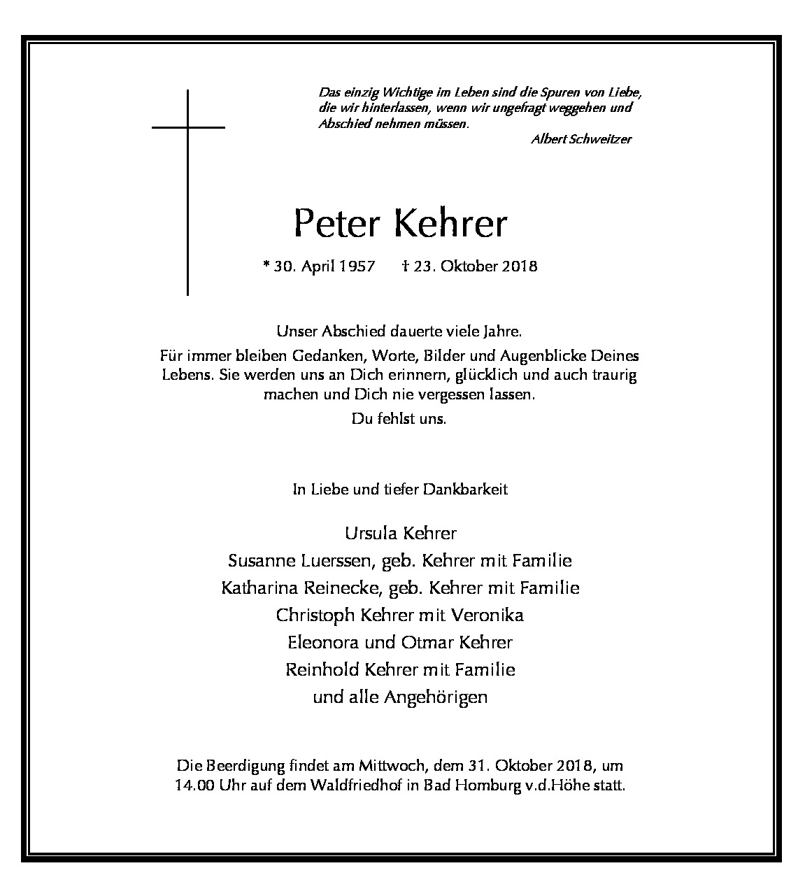 †23.10.2018, Ruhestätte: Waldfriedhof, Bad Homburg