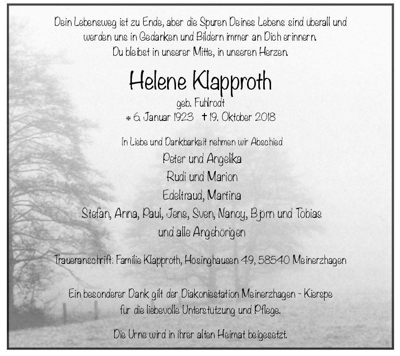 Diese Gedenkseite möge Ihnen dabei helfen, Ihre Trauer zu teilen und das Andenken gemeinsam wachzuhalten.