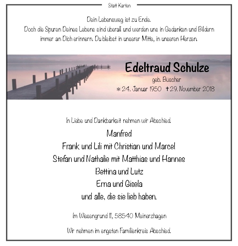 in diesen Tagen fühlen wir mit Ihnen und wünschen Ihnen von Herzen, dass Sie aus den glücklichen Erinnerungen Kraft schöpfen, um positiv in die Zukunft zu gehen. Diese Gedenkseite möge Ihnen dabei helfen, Ihre Trauer zu teilen und das Andenken gemeinsam wachzuhalten.