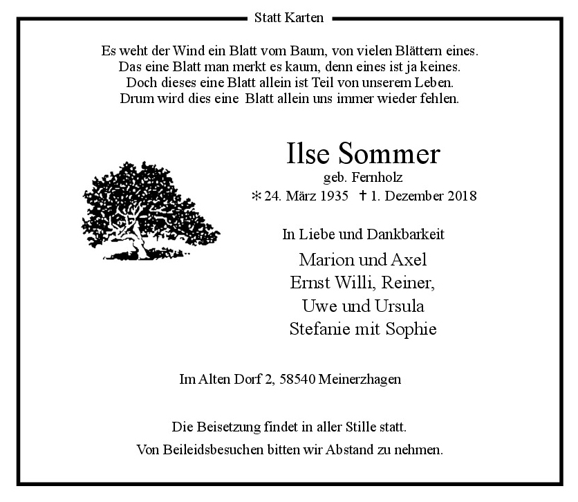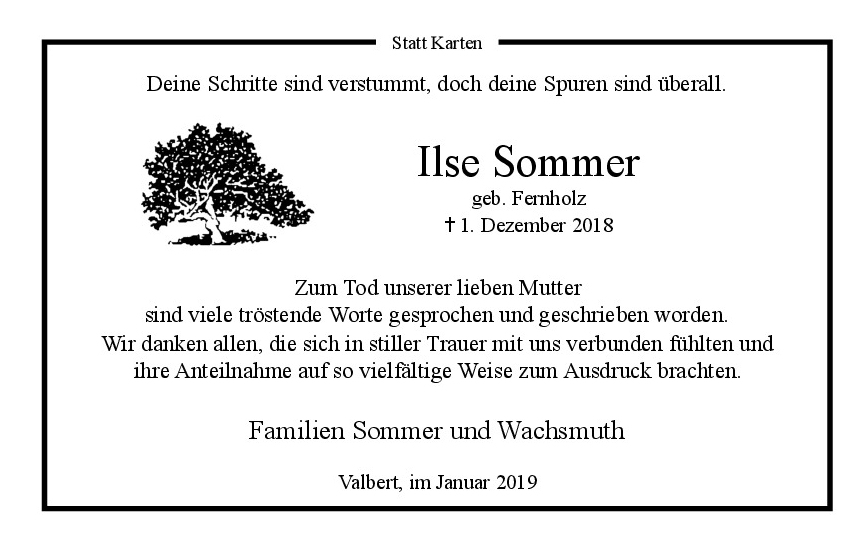 in diesen Tagen fühlen wir mit Ihnen und wünschen Ihnen von Herzen, dass Sie aus den glücklichen Erinnerungen Kraft schöpfen, um positiv in die Zukunft zu gehen. Diese Gedenkseite möge Ihnen dabei helfen, Ihre Trauer zu teilen und das Andenken gemeinsam wachzuhalten.