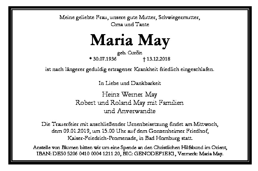 †13.12.2018, Ruhestätte: Gonzenheimer Friedhof, Bad Homburg