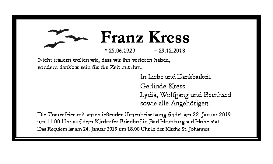 †29.12.2018, Ruhestätte: Kirdorfer Friedhof, Bad Homburg