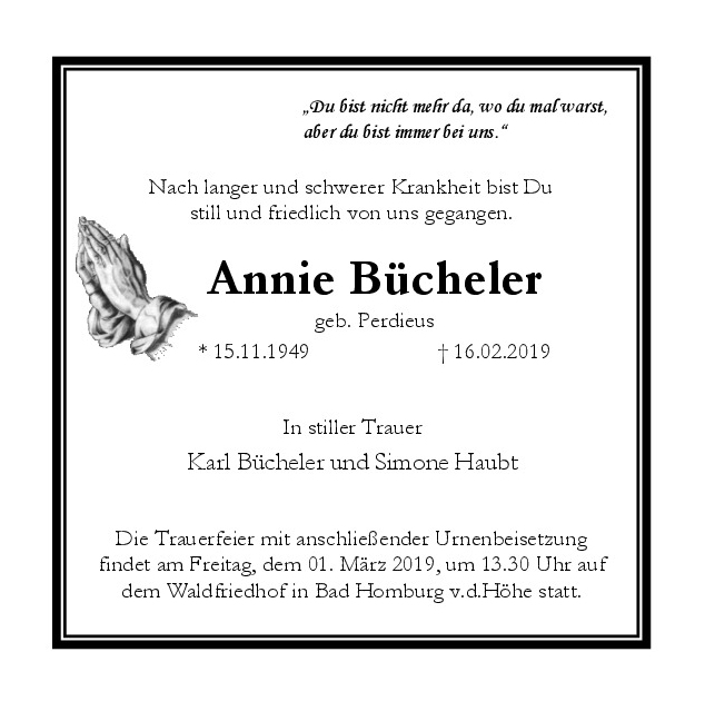 †16.02.2019, Ruhestätte: Waldfriedhof, Bad Homburg