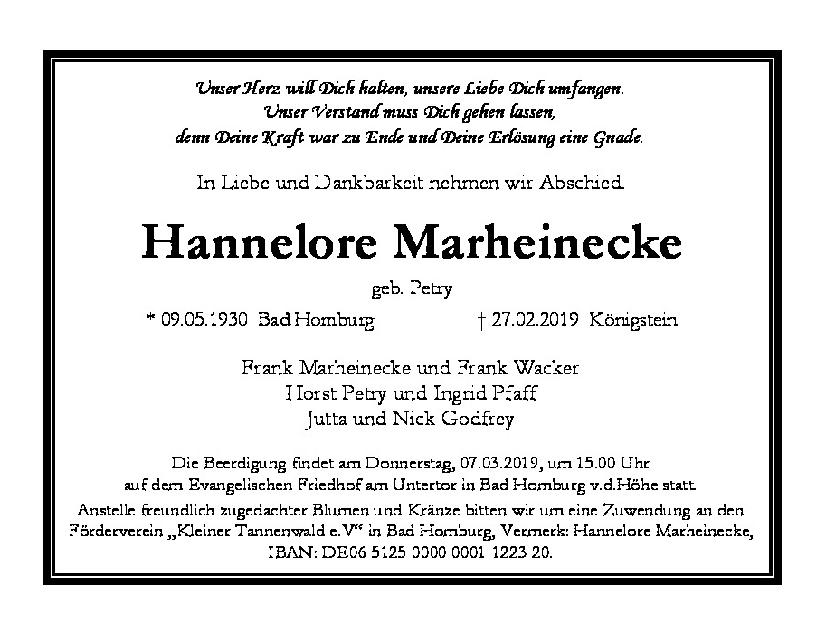 †27.02.2019, Ruhestätte: Ev. Friedhof, Bad Homburg
