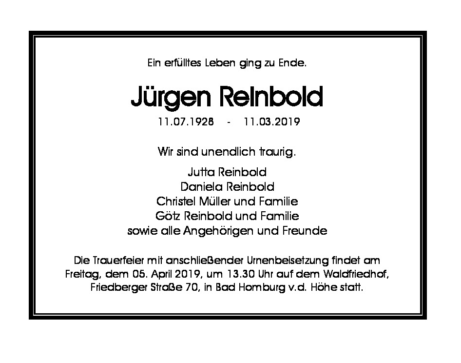 †11.03.2019, Ruhestätte: Waldfriedhof, Bad Homburg