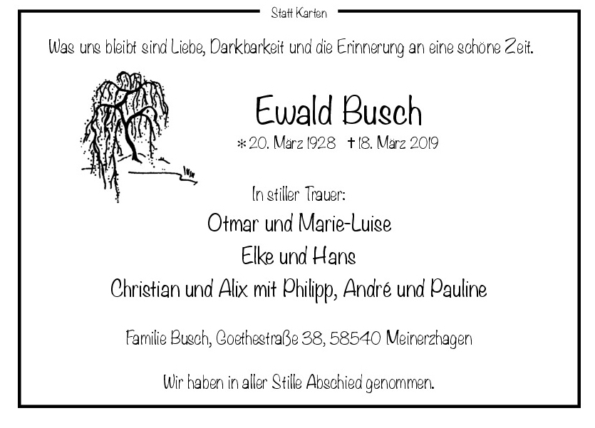 in diesen Tagen fühlen wir mit Ihnen und wünschen Ihnen von Herzen, dass Sie aus den glücklichen Erinnerungen Kraft schöpfen, um positiv in die Zukunft zu gehen. Diese Gedenkseite möge Ihnen dabei helfen, Ihre Trauer zu teilen und das Andenken gemeinsam wachzuhalten.