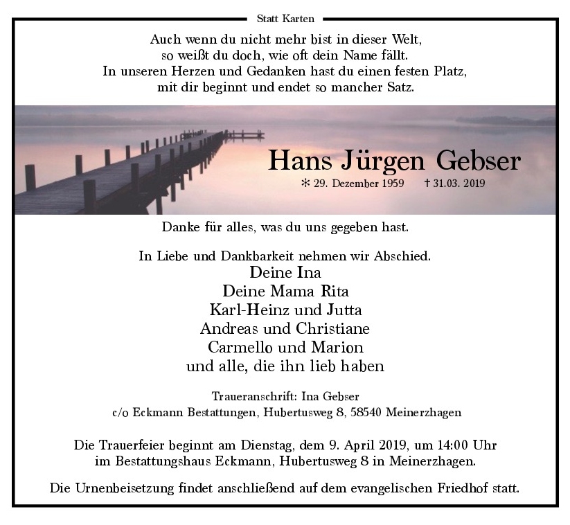 wir wünschen Ihnen von Herzen viel Kraft, dass Sie Menschen um sich haben, die Ihnen in dieser schweren Zeit beistehen und Halt geben. Zusätzlich können Sie auf dieser Gedenkseite Erinnerungen teilen und so das Andenken gemeinsam wachhalten.