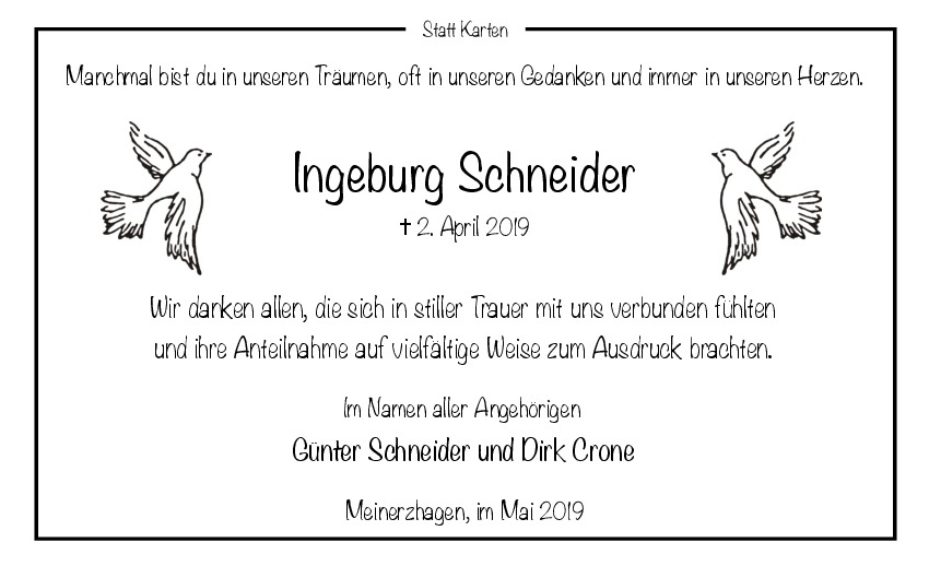 in diesen Tagen fühlen wir mit Ihnen und wünschen Ihnen von Herzen, dass Sie aus den glücklichen Erinnerungen Kraft schöpfen, um positiv in die Zukunft zu gehen. Diese Gedenkseite möge Ihnen dabei helfen, Ihre Trauer zu teilen und das Andenken gemeinsam wachzuhalten.