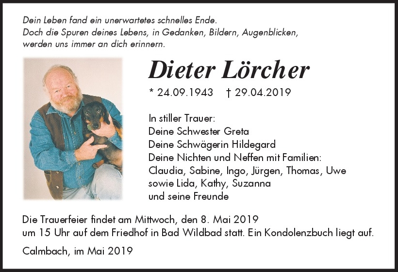 †29.04.2019, Ruhestätte: Friedhof Calmbach
