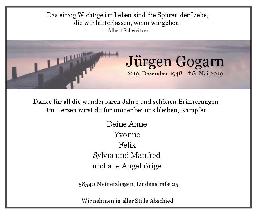 in dieser Zeit des Schmerzes wünschen wir Ihnen Kraft, den Verlust im Kreise Ihrer Liebsten zu verarbeiten. Als Zeichen unserer Anteilnahme und des Gedenkens entzünden wir dieses erste Licht. Möge diese Gedenkseite Ihnen helfen, Erinnerungen zu teilen und so das Andenken gemeinsam wachzuhalten.