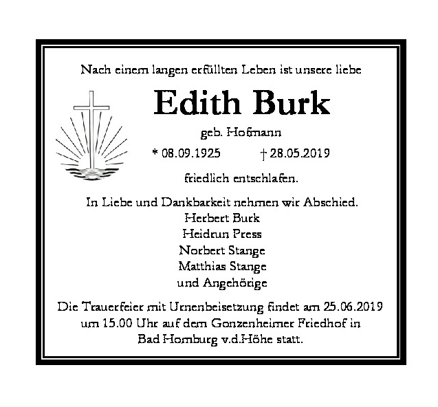†28.05.2019, Ruhestätte: Gonzenheimer Friedhof, Bad Homburg