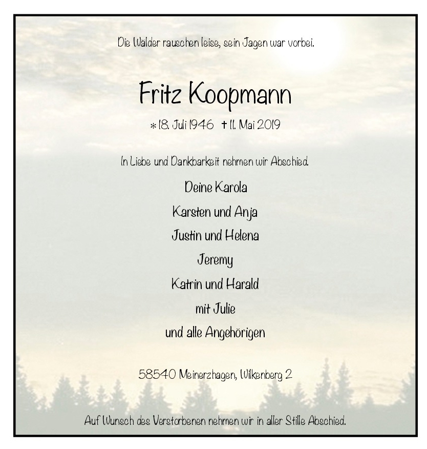 wir wünschen Ihnen von Herzen viel Kraft, dass Sie Menschen um sich haben, die Ihnen in dieser schweren Zeit beistehen und Halt geben. Zusätzlich können Sie auf dieser Gedenkseite Erinnerungen teilen und so das Andenken gemeinsam wachhalten.