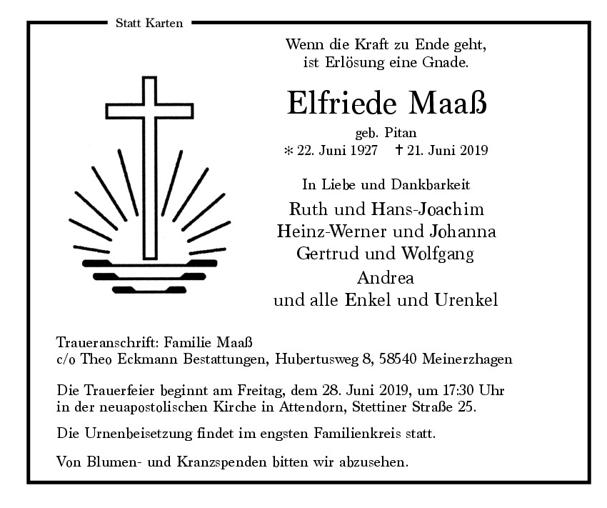 in diesen Tagen fühlen wir mit Ihnen und wünschen Ihnen von Herzen, dass Sie aus den glücklichen Erinnerungen Kraft schöpfen,