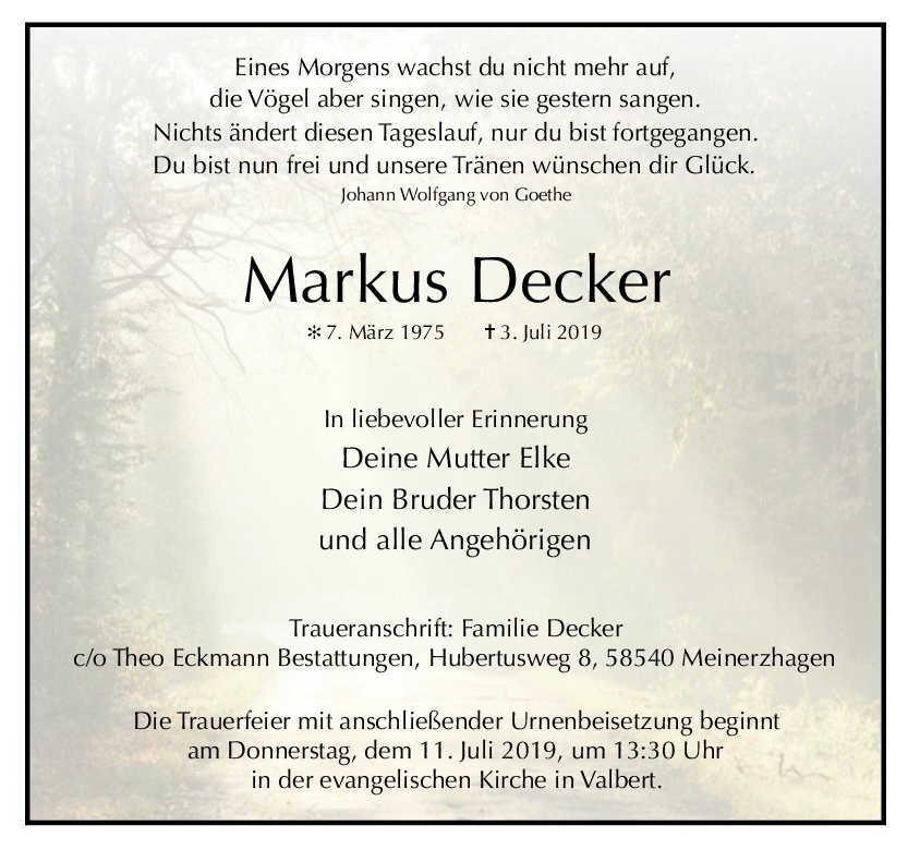 Diese Gedenkseite möge Ihnen dabei helfen, Ihre Trauer zu teilen und das Andenken gemeinsam wachzuhalten.