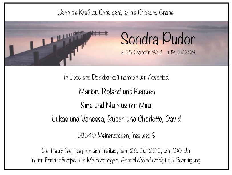 in diesen Tagen fühlen wir mit Ihnen und wünschen Ihnen von Herzen, dass Sie aus den glücklichen Erinnerungen Kraft schöpfen, um positiv in die Zukunft zu gehen.