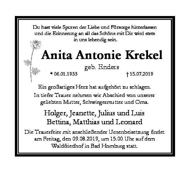 †15.07.2019, Ruhestätte: Waldfriedhof, Bad Homburg